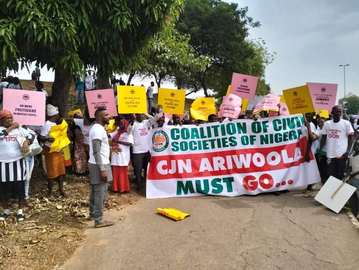 The protesters had accused the CJN of dabbling into partisan affairs, saying his utterances in Port Harcourt, the Rivers state capital while being a guest of Gov. Nyesom Wike, left much to be desired.