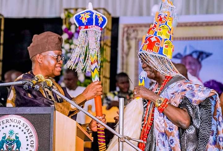 Osun State governor, Adegboyega Oyetola, on Thursday presented staff of office and instrument of appointment to the new Ogunsua of Modakeke, Oba Joseph Olubiyi Toriola.