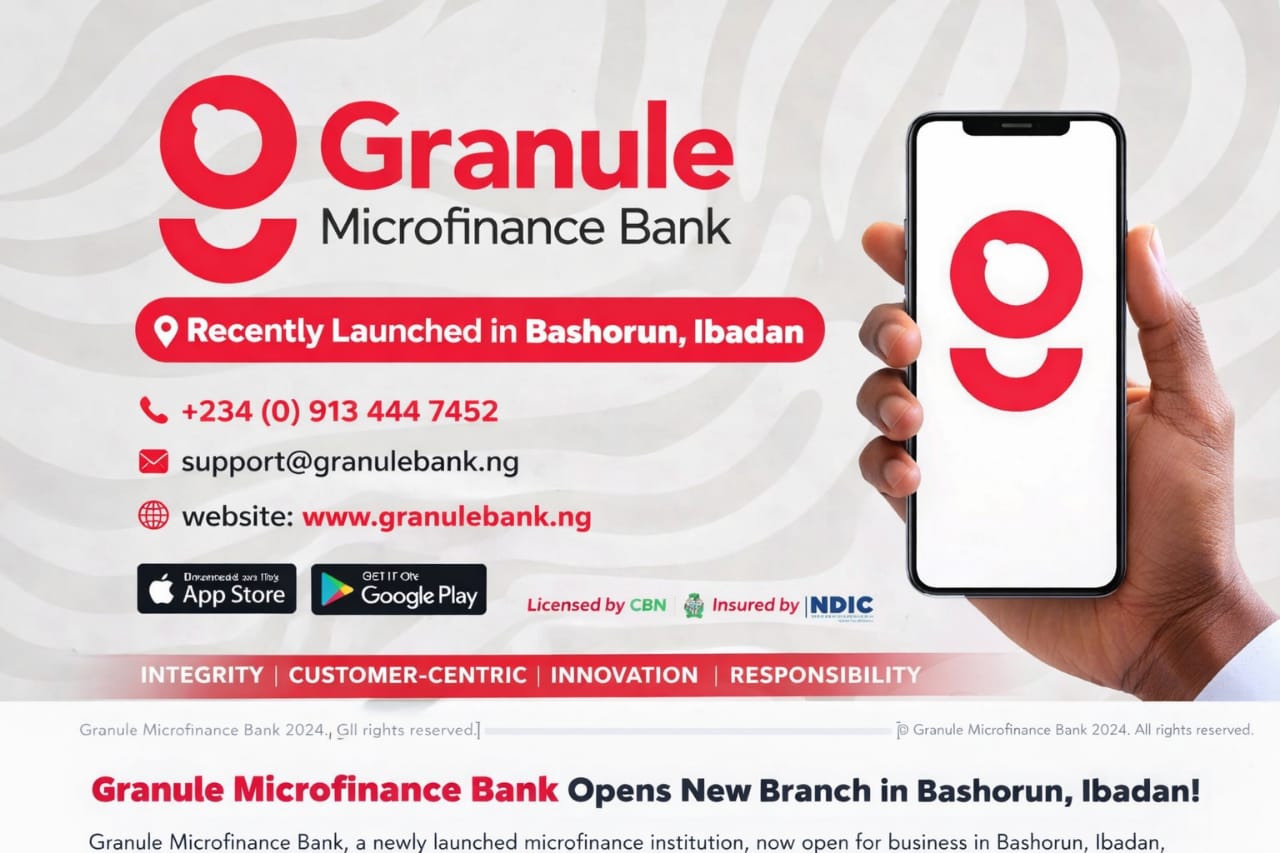 With its entry into the financial landscape of Ibadan, Granule Microfinance Bank is set to become a reliable partner for individuals and enterprises seeking growth, stability, and modern banking solutions.