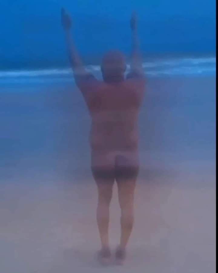 Olaiya Igwe shared the video on his Instagram page in which he was seen wearing his ‘birthday suit’ on the beach, praying while a picture of Tinubu was intermittently displayed on the edge of the video.