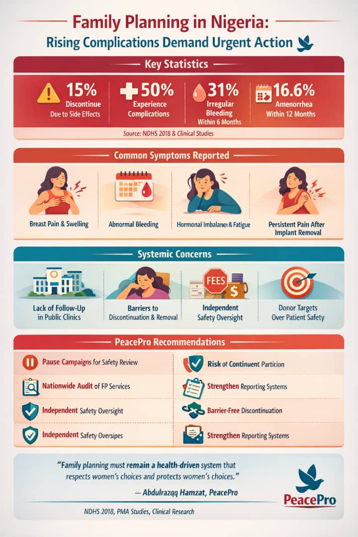 PeacePro is calling on the Federal and State Ministries of Health, development partners, and implementing agencies to pause further aggressive family planning campaigns pending a comprehensive safety review.