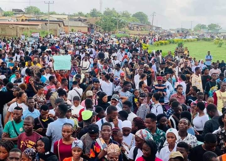 Though a peaceful demonstration, the action saw most of the students shutting down the entrance to the polytechnic, disrupting the ongoing second semester examinations of the institution.