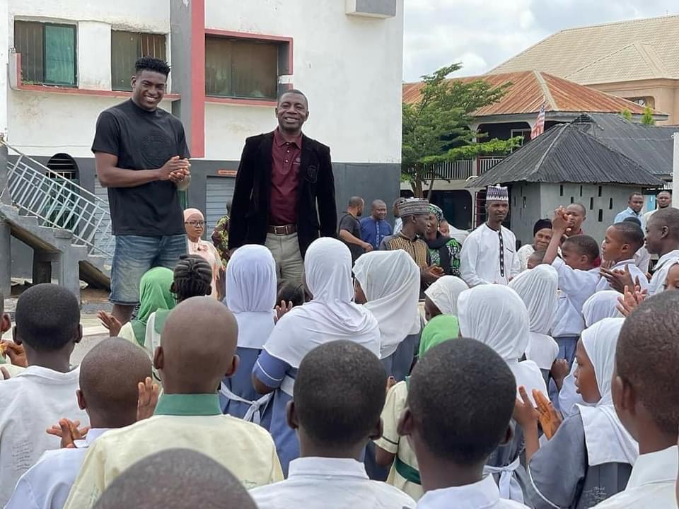 Awoniyi after donating cash to the teachers and also donated books and other various writing materials in his elementary school.